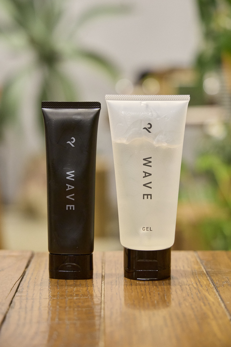 セット力と潤いを両立するべく今回はワックスとジェルを1:1の割合で混ぜて使用。「パーマをかけている髪の毛は乾燥しやすいので量は多めを意識しましょう」左から、ワックス¥1980、ジェル ¥1980