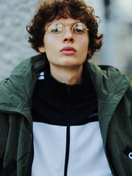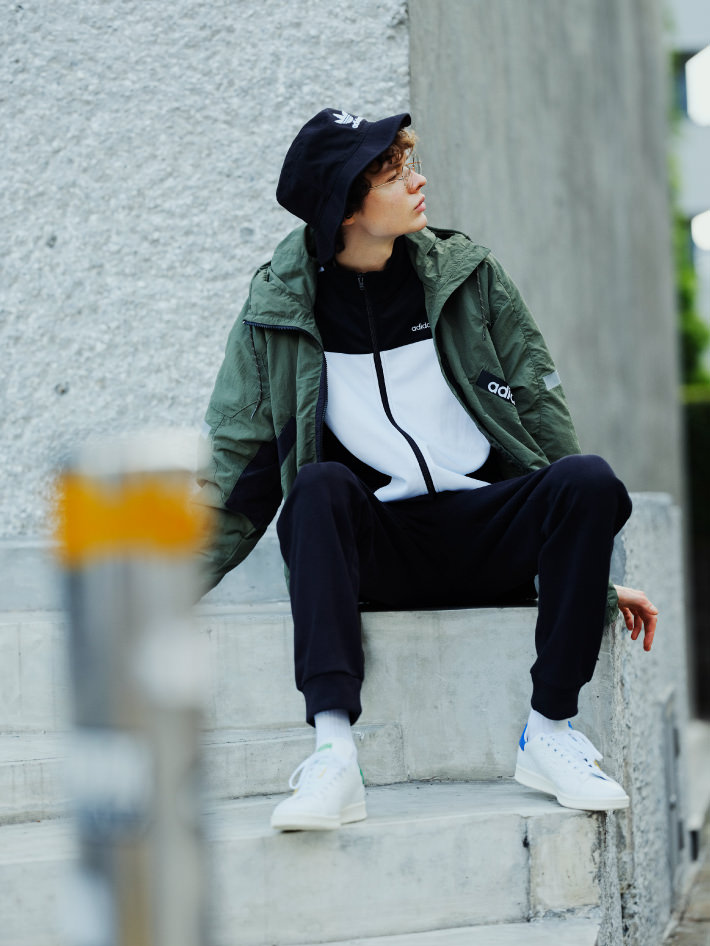 仲間と遊ぶ時はストリートルックで。インナーのジャージはアディダ