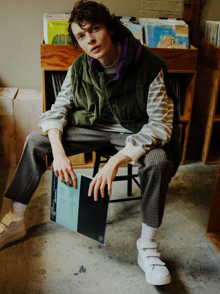 信頼のレコード屋は必ずチェック。オーバーサイズのボーダーシャツに